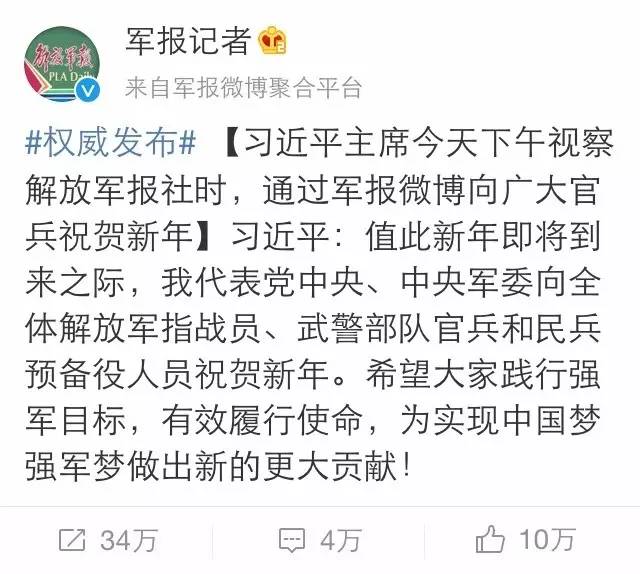 在军报微博微信发布平台,习近平敲击键盘,发出了一条微博: